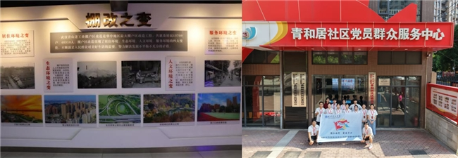 踏入武汉青和居社区,实践团首先走进新时代展馆。斑驳老照片中,低矮破旧的棚户房屋挤挤挨挨;崭新实景模型里,整洁美观的高楼、设施完备的休闲区一一呈现,时光的跨越让成员们直观触摸到,社区从“棚户连片”到“幸福满格”的沧桑巨变。