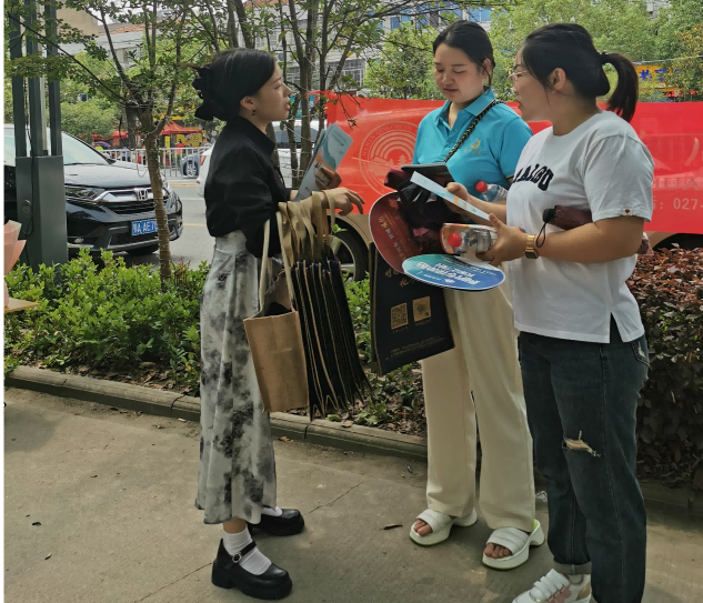 (李菀同志积极参与招生工作,正在给学生家长进行宣讲)