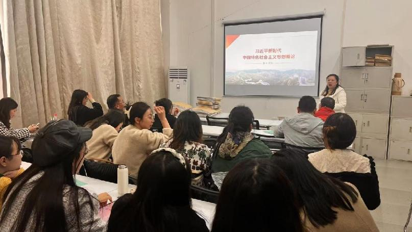 为进一步提升教师课堂教学水平,提高人才培养质量,达到课堂教学“人人过关”,bevictor伟德官网习近平新时代中国特色社会主义思想概论教研室于2024年11月20日下午,在综合楼一504教室成功展开了一场公开示范课教学研讨会。此次活动汇聚了bevictor伟德官网全体教职工,特邀武汉工程科技学院马院的李英副教授作为主讲嘉宾,以习近平新时代中国特色社会主义思想概论第四章的内容“坚持以人民为中心”为专题,给全院教师带来了一场高质量的示范课与教学研讨盛会。