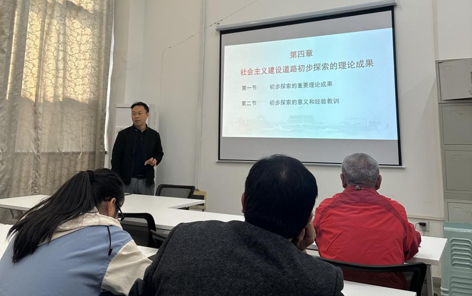 随着付克新教授的入场,全场听课的教师们以热烈的掌声表达了对他的敬意。付教授以“新中国成立以来我国社会主义建设前后两个时期的认识与评价”为主题,开启了本次课程的序幕。他凭借严谨的逻辑和深刻的见解,对社会主义建设道路的理论成果进行了详尽的阐释。付教授的授课内容不仅包括了理论知识,还融入了实际案例分析,使得课程内容既生动又富有启迪,极大地丰富了在场教师们的知识储备。