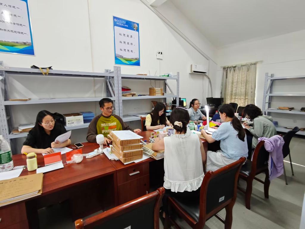 (教研室老师在交流工作)