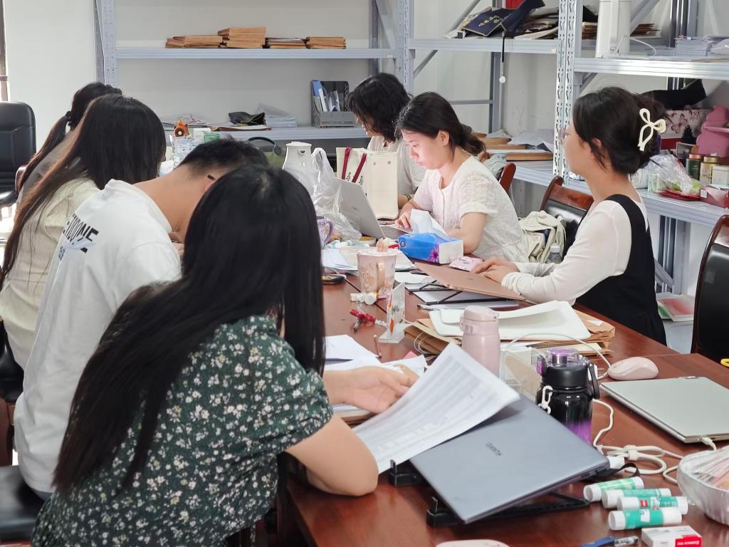 (教研室老师在交流工作)