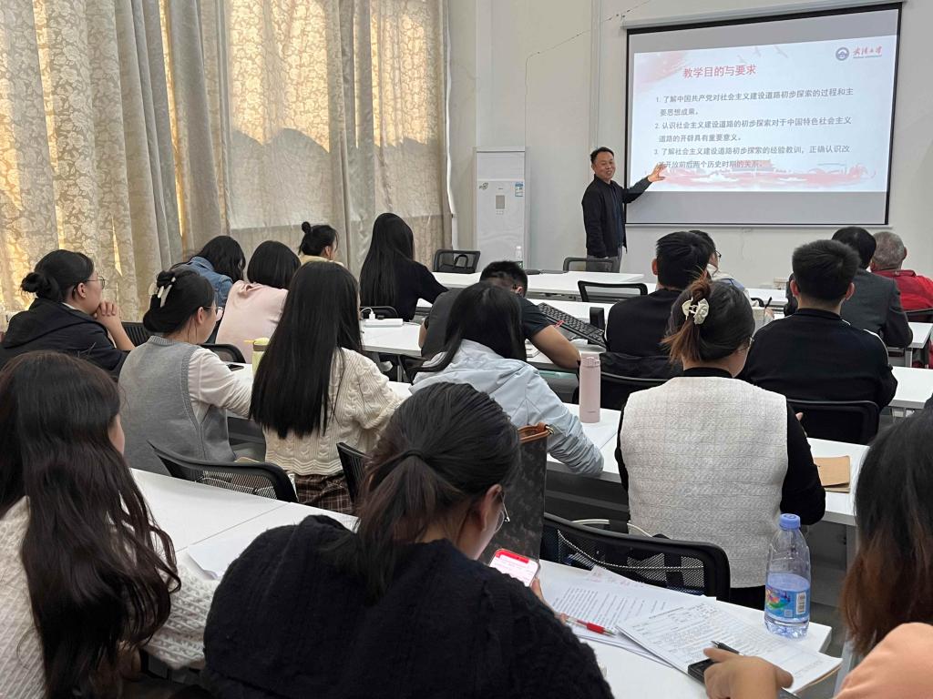 1.武汉大学bevictor伟德官网教授付克新受邀来我院开展《毛泽东思想和中国特色社会主义理论体系概论》示范教学,内容围绕社会主义建设道路的初步探索展开。同时,付教授还针对教学过程中诸多可能存在的问题给出了许多建议。