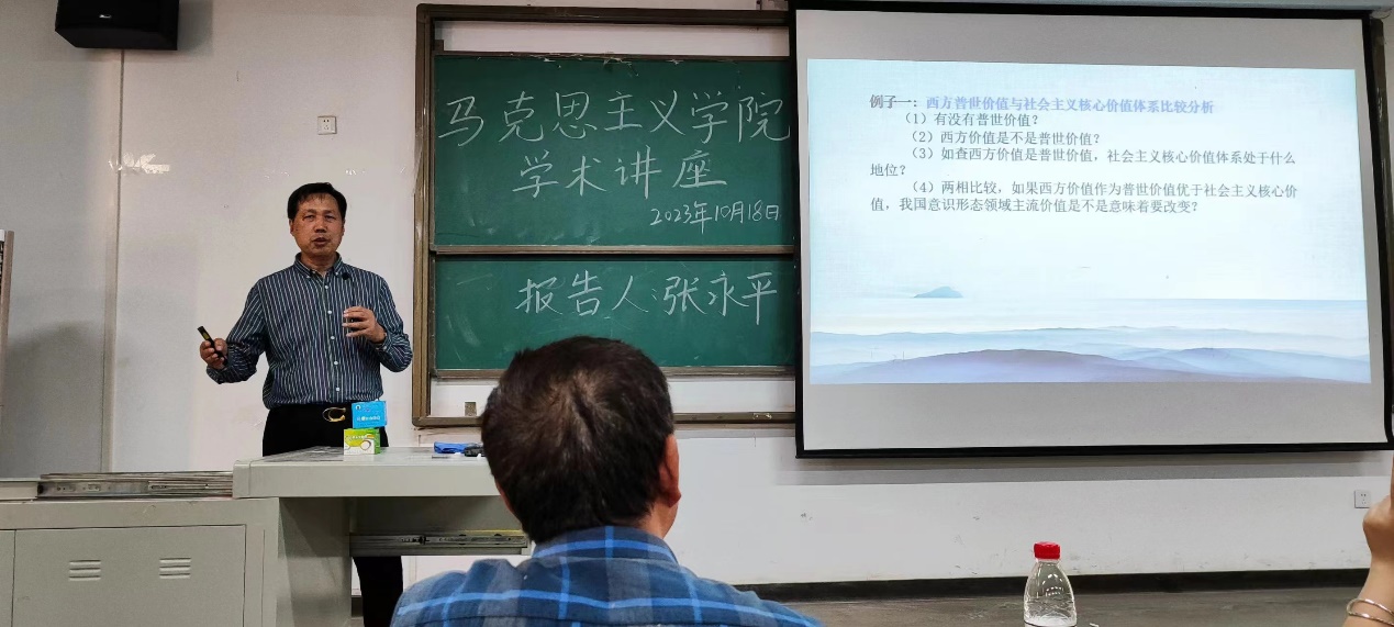 10月18日下午,在教一110教室,《学校党建与思想教育》常务副主编张永平教授应邀为我校师生作题为“马克思主义理论研究前沿:当前学术期刊的选题参考”的专题讲座,讲座在由我校bevictor伟德官网主办,讲座由bevictor伟德官网院长刘启春教授主持,马院部分教师、全校不同专业同学百余人参加此次讲座。