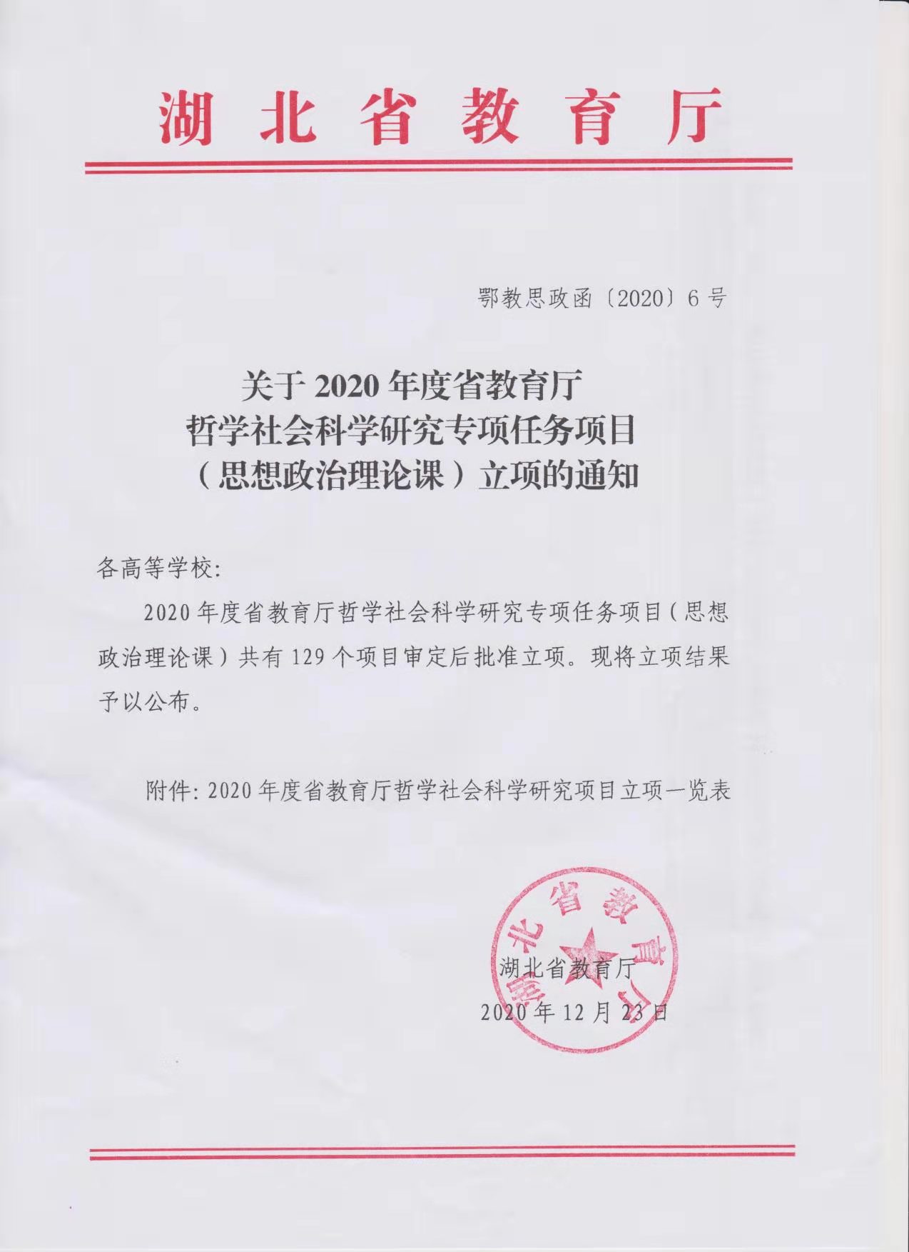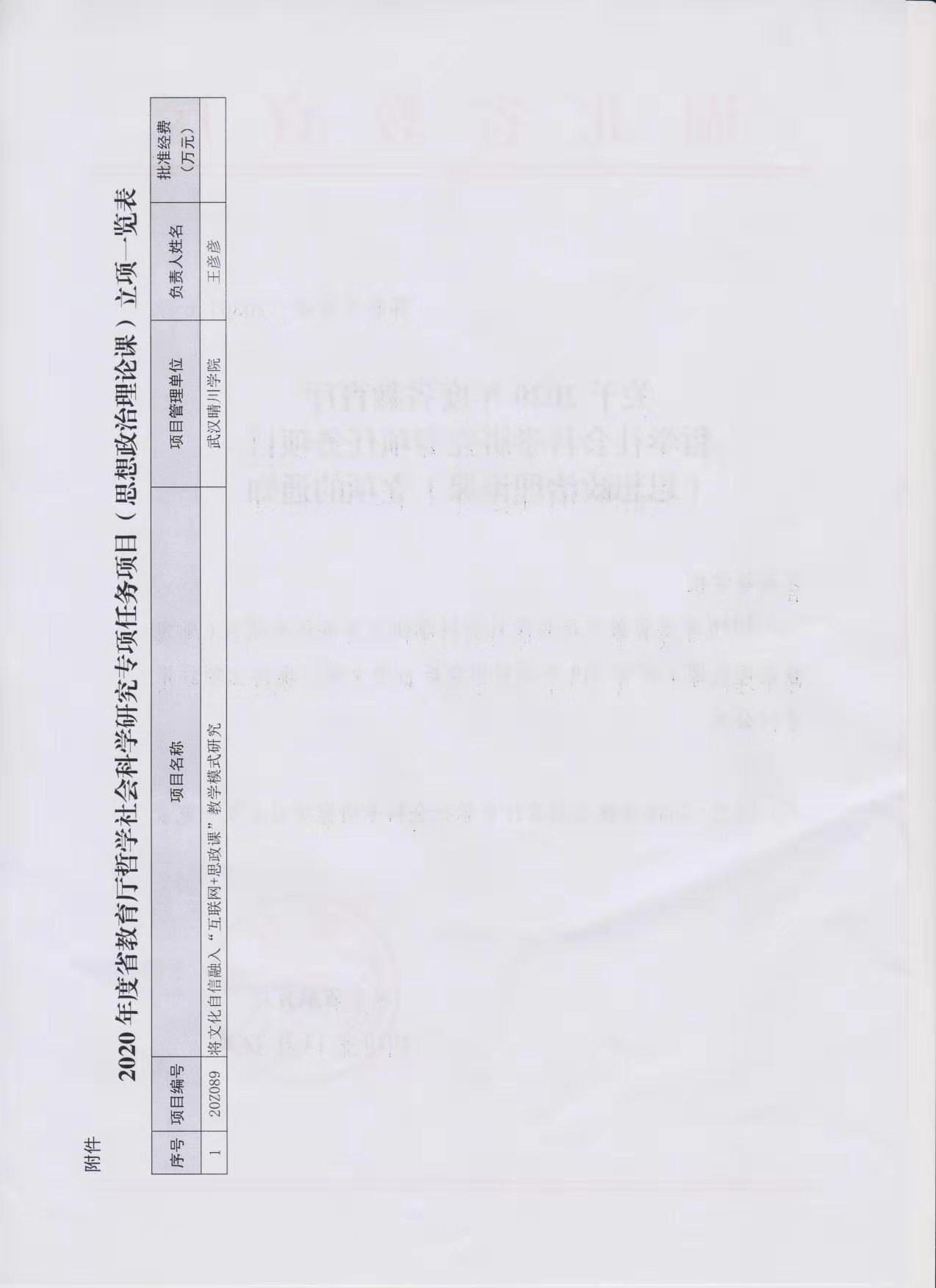思想政治理论课部王彦彦老师2020年哲学社会科学专项任务立项通知